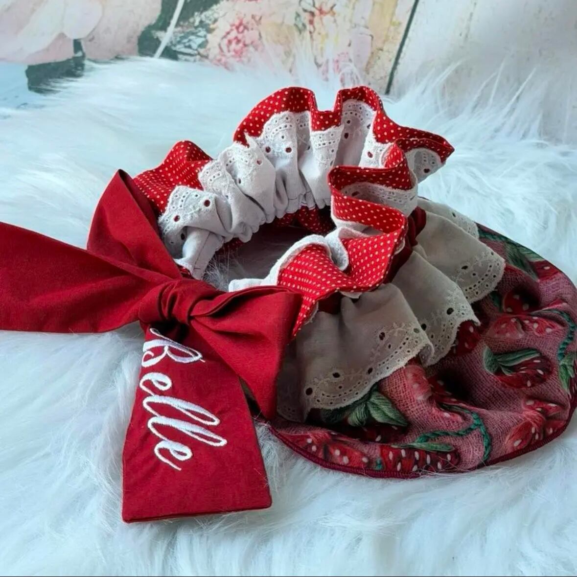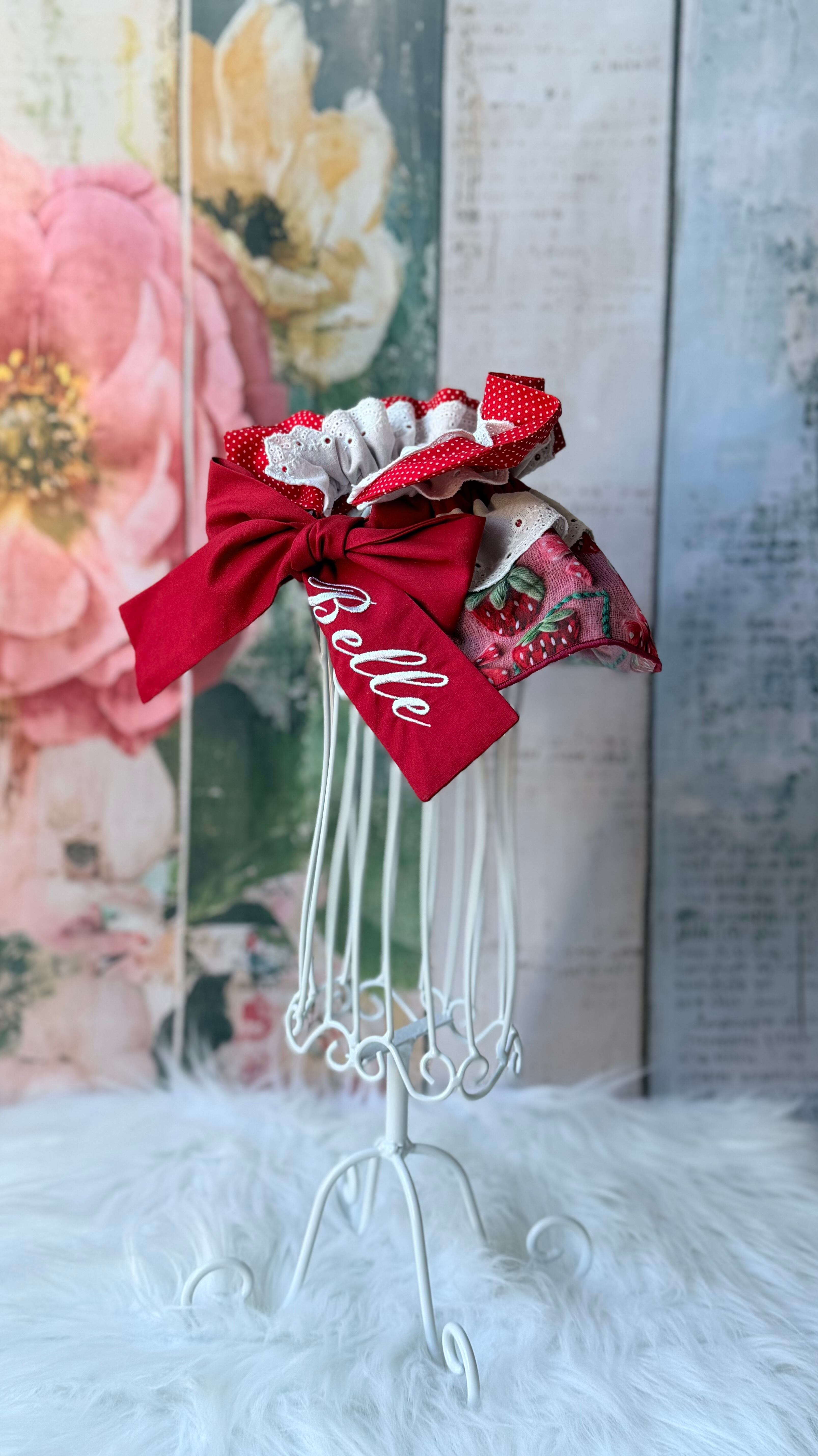 犬服 いちご 犬用マント・ケープ/筆記体刺繍入り 春 バレンタイン ネーム
