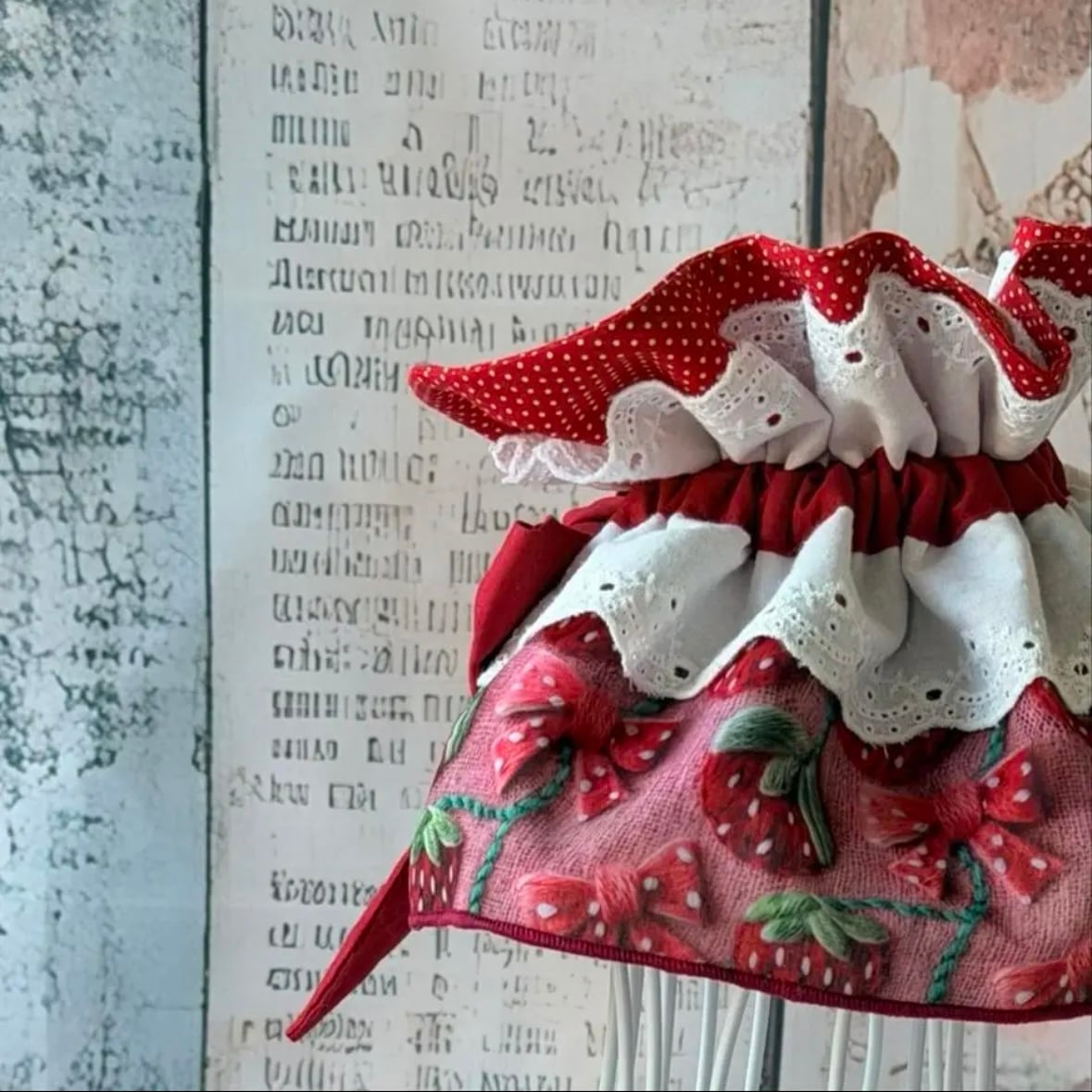 春に可愛い、いちご柄のマントです♪